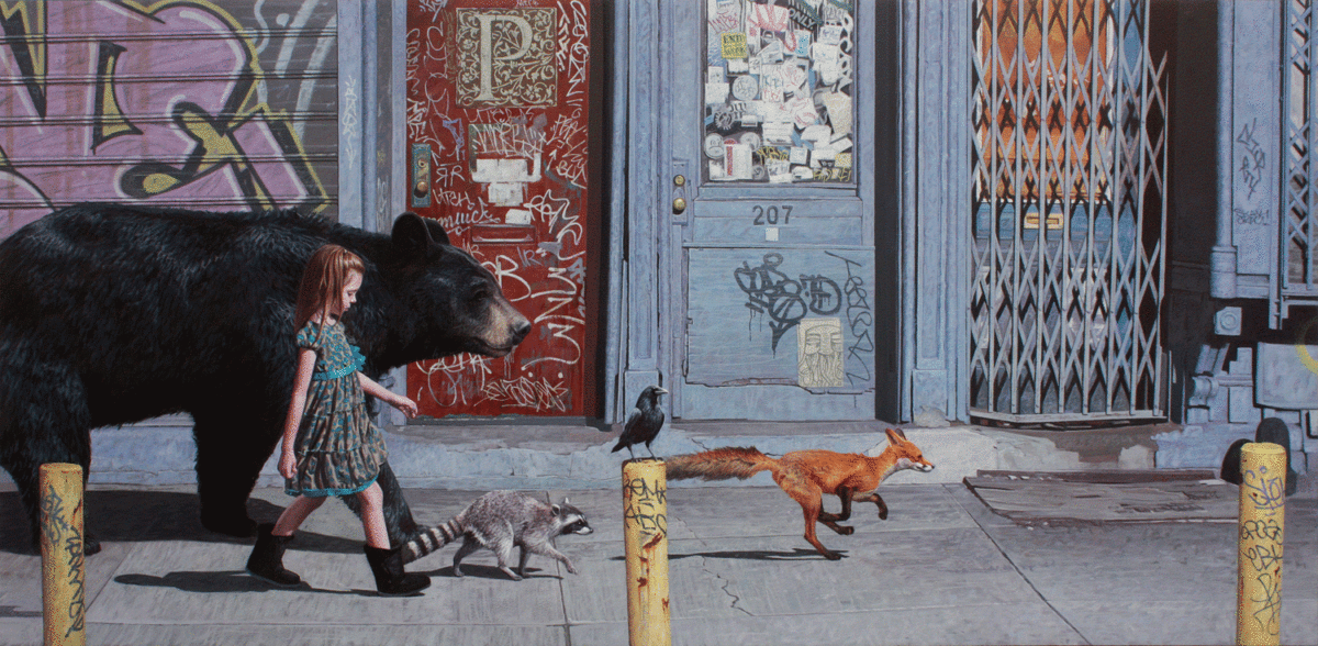 Ο Κέβιν Πίτερσον (Kevin Peterson) εξακολουθεί να ζωγραφίζει πίνακες μικρών παιδιών και ζώων σε αντιδιαστολή με το αστικό περιβάλλον. Παιδιά που είναι μόνα τους, με συντροφιά συμμάχους από το ζωικό βασίλειο – πολικές αρκούδες, λιοντάρια, ρακούν – είναι στο κέντρο του κάθε πίνακα με εγκαταλελειμμένα κτίρια που καταρρέουν ένα γύρω.