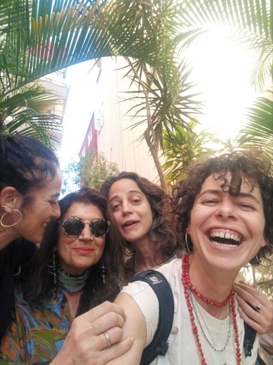 Η Λία Σταμοπούλου με συνεργατιδές της στο Booze, χώρο που μετατράπηκε σε εργαστήρι της.