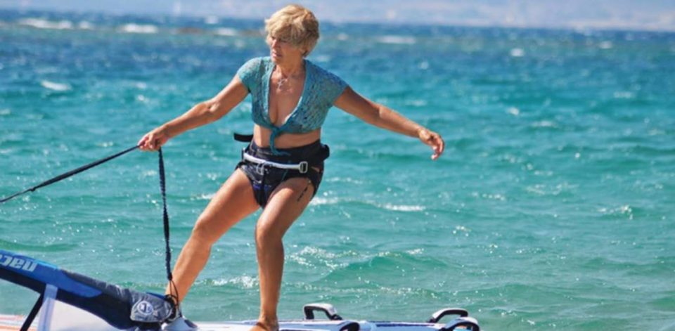 «Το surfing μπήκε στη ζωή μου στα 41 μου. Είχαμε πάει με τον νυν άντρα μου στην Ισπανία, στα Κανάρια Νησιά στο Las Palmas για διακοπές. Δύο μέρες πριν φύγουμε είδα κάποιον να κάνει windsurfing και αμέσως είπα στον εαυτό μου : ¨Αυτό είναι, αυτό είναι που μου ταιριάζει!” . Το δοκίμασα αμέσως και ας μου έλεγε ο Γερμανός που μου νοίκιασε τον εξοπλισμό ότι χρειάζομαι δέκα μέρες εκπαίδευση. Τη δεύτερη μέρα κιόλας είχα γίνει ξεφτέρι! Έτσι ξεκίνησαν όλα… Ξέρετε, παιδιά, πάντα έβλεπα στα όνειρά μου ότι πετούσα! Φτερούγιζα σαν αεροπλάνο πάνω από πεδιάδες, νερά και ποτάμια..Αυτή τη φανταστική αίσθηση την ξαναβρήκα στο windsurfing!»