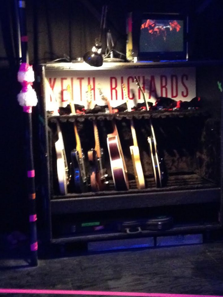 Στη συνέχεια οδηγούμαστε σε ένα χώρο που έχει φτιαχτεί έτσι ώστε να θυμίζει το backstage μιας μεγάλης συναυλίας ή φεστιβάλ με αρκετά ρεαλιστικό τρόπο. Υπάρχουν κάσες με όργανα, ένα καμαρίνι, μια βάση με όλες τις κιθάρες του Keith Richards.