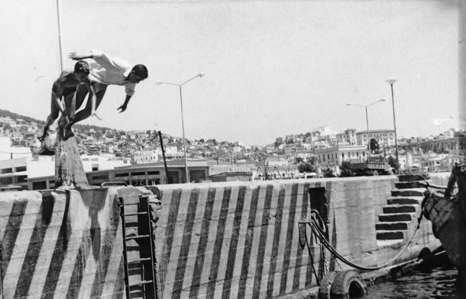 Η παράδοξη αυτή σκηνή λαμβάνει χώρα στη προκυμαία της Καβάλας (τέρμα δεξιά στο βάθος διακρίνονται οι «Καμάρες»).