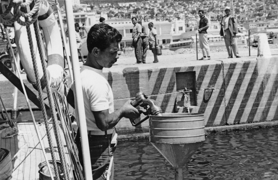 Στο σωσίβιο του σκάφους (αριστερά) διακρίνονται τα R.Y.C.G, Royal Yaght Club of Greece, η τοτινή ονομασία του Ναυτικού Ομίλου Ελλάδας.