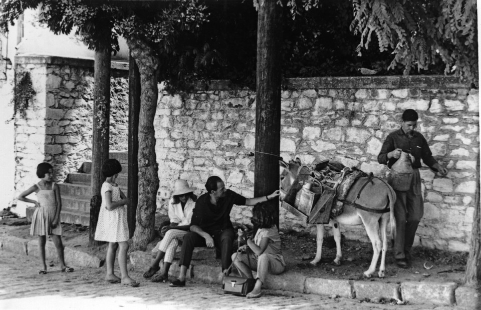 Βλέποντας αυτή τη φωτογραφία της Μελίνας στο Μουσείο Μπενάκη εχτές την Κυριακή, το καρό κάπρι παντελόνι και το άσπρο πουκάμισο μου θύμισε μια σειρά 15 περίπου μικρών φωτογραφιών (7x10cm) που είχα αγοράσει πριν λίγα χρόνια από το παζάρι των ρακοσυλλεκτών. Ο λόγος ήταν ότι μου είχε κεντρίσει την προσοχή η γυναίκα που «πρωταγωνιστούσε» σε αυτές τις αναμνηστικές φωτογραφίες, το εξαίσιο και αέρινο στυλ αλλά κάπως «παράτερη» με το υπόλοιπο περιβάλλον. Υπέθετα μια «κοσμική» παρέα που κάνει ολιγοήμερες διακοπές σε κάποιο μέρος της Ελλάδος, αρχές της δεκαετίας του ’60. Σήμερα το πρωί [10/3/14] διαπίστωσα πως ήταν η Μελίνα Μερκούρη. Δυστυχώς στο λεύκωμα της έκθεσης η φωτογραφία αυτή είναι από τις ελάχιστες χωρίς credits. Ας είναι, μας αρκεί κι έτσι (σημείωνα εχτές). Μία μέρα μετά (11/3/14) μερικά πράγματα ξεκαθάρισαν. Η «κοσμική παρέα» είναι σίγουρα τα ζευγάρια Ντασέν-Μελίνα και Μάγια Καλλιγά με τον σύζυγό της (μας διαφεύγει το όνομα). Και σίγουρα η δεύτερη «ανακάλυψη» είναι για την ενδιαφέρουσα περίπτωση της Μάγιας. Δείτε λίγο παρακάτω.