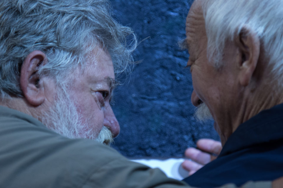 Οι παλιές φιλίες. Θεοφυλακτόπουλος και Μπότσογλου στο βιβλιοπωλείο Φωταγωγός 2017, φωτογραφία Αλέξανδρος Χριστοδούλου.