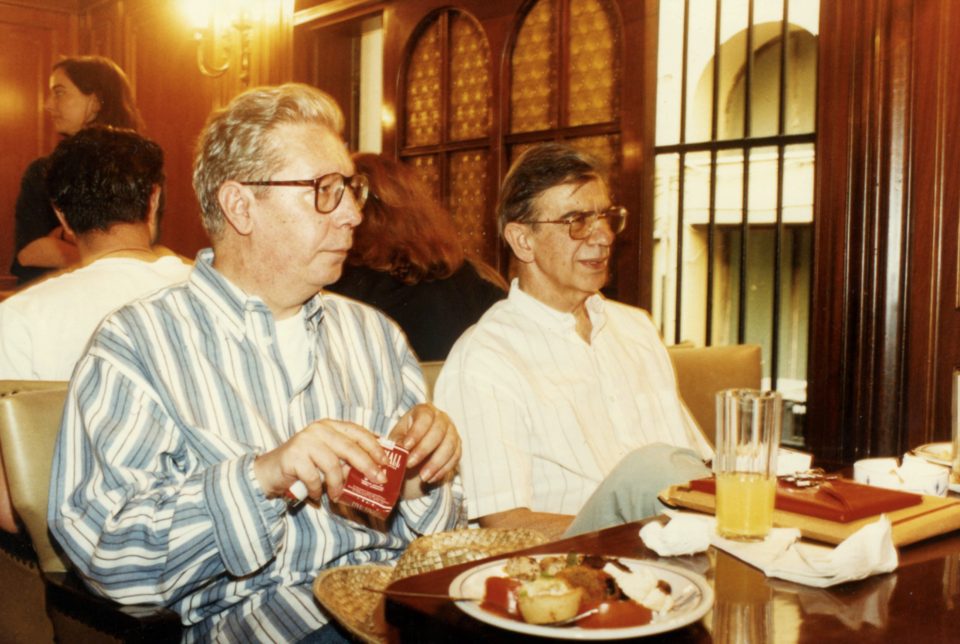 Οι παλιοί φίλοι που δεν είναι πιά εδώ. Διοσκουρίδης και Κουμανταρέας στο πατάρι του Zonar’s, 1995, φωτογραφία Κωστής Βαρδίκος.