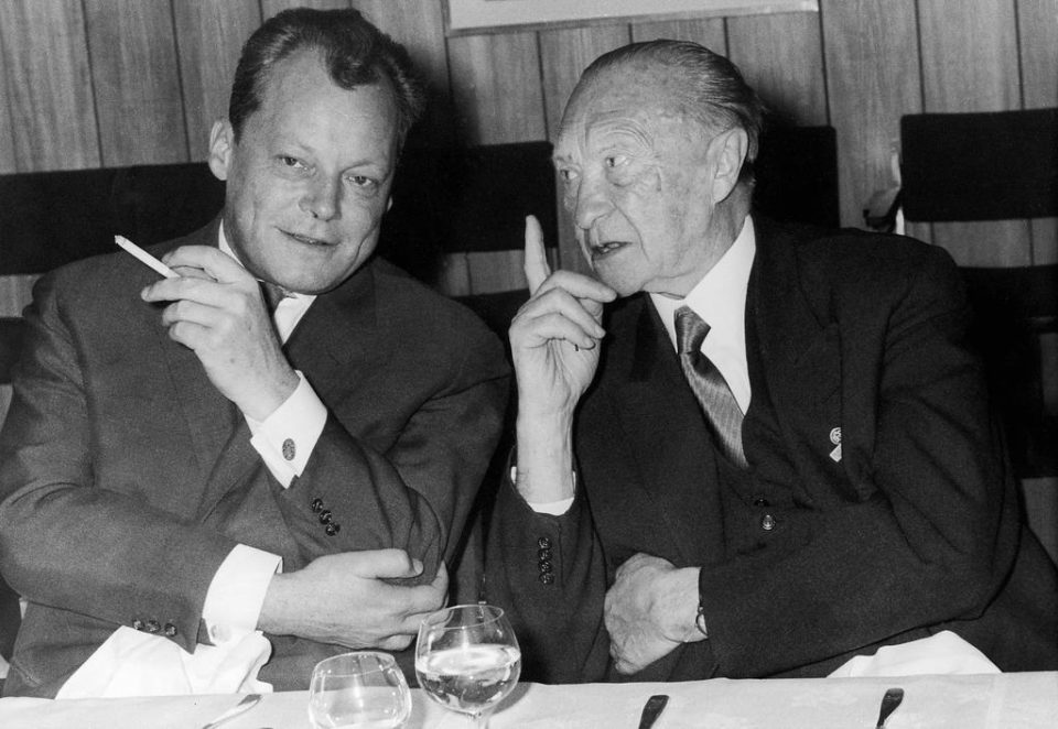 1961, o Βίλυ Μπραντ (τότε δήμαρχος δυτικού Βερολίνου) μαζί με τον καγκελάριο Κόνραντ Αντενάουερ