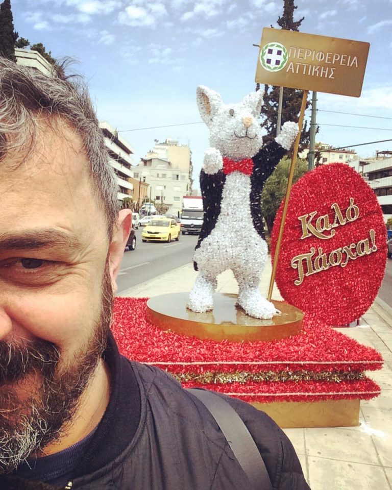 Με τον ένα ή τον άλλο τρόπο, μέσα στην πάροδο των χρόνων ο Αμερικανός πασχαλινός λαγός έγινε κομμάτι και της δικής μας ποπ κουλτούρας (κυρίως στην σοκολατοποιημένη εκδοχή του). Οπότε η παρουσία του μια μέρα, έτσι από το πουθενά, στους δρόμους της Αθήνας, αγκαλιά με την ταμπέλα Περιφέρεια Αττικής, ως υπενθύμιση της Πασχαλινής Περιόδου, σε μια πόλη δηλαδή που γιορτάζει για δεύτερη συνεχόμενη φορά τον εορταστικό εγκλεισμό της, δεν τάραξε μόνο την καθημερινότητα μας, αλλά και την αποσυντόνισε. Και σκόρπισε χαμόγελα. Για εντελώς λάθος λόγους. Όπως έχουμε συνηθίσει πια. Να ‘ναι καλά ο Γιώργος Πατούλης, η Περιφέρεια Αττικής (να μας πει κάποια στιγμή, πόσο μας κόστισε το Πασχαλινό αυτό εικαστικό) και η μπαναλιτέ ξενόφερτη αισθητική που θα φλερτάρει με τους εκάστοτε κυβερνόντες ως το τέλος τους κόσμου.