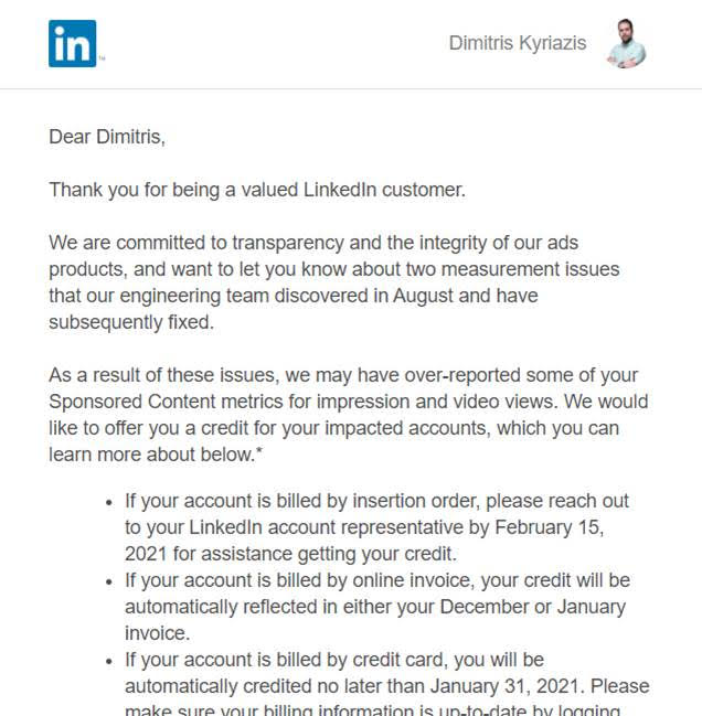Πρέπει να βασιστώ στο λόγο του και να παραβλέψω για παράδειγμα το παρακάτω email που μου έστειλε στις 18 Νοεμβρίου 2020, με το οποίο παραδέχθηκε λάθη στη διαδικασία καταμέτρησης των αποτελεσμάτων των διαφημίσεων που πραγματοποίησα;