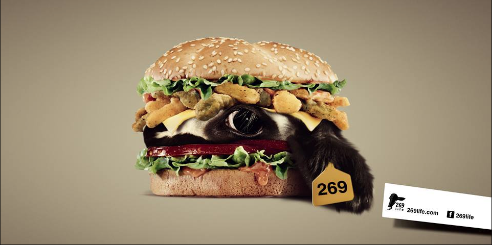 Κάποιες εταιρείες χρησιμοποιούν μία καρτουνίστικη εκδοχή ενός γουρουνιού για παράδειγμα ως logo τους, ενώ είναι τραγική ειρωνεία όταν απεικονίζεται το γουρούνι ως σφαγέας του εαυτού του. Η ιδέα της υποτιθέμενης υπεροχής του ανθρώπου ως προς τα άλλα ζώα είναι τόσο βαθιά ριζωμένη στη συνείδηση του, έτσι ώστε οι κοινωνίες μας να μην αντιλαμβάνονται καν τα εγκλήματα που διαπράττουν, γράφει το 269 Life.