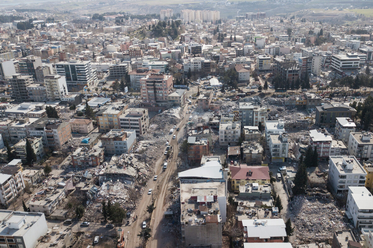 Αεροφωτογραφία. Γενική άποψη κτιρίων που κατέρρευσαν στο Adiyaman, 15 Φεβρουαρίου 2023 ΕΠΑ/ TOLGA BOZOGLU