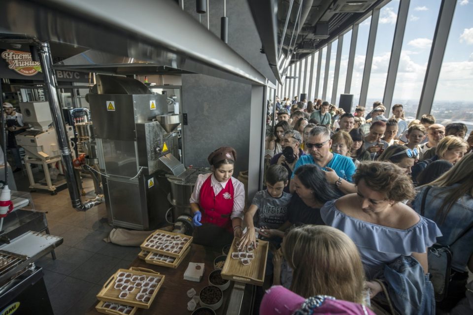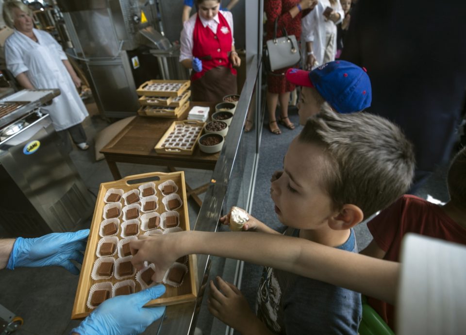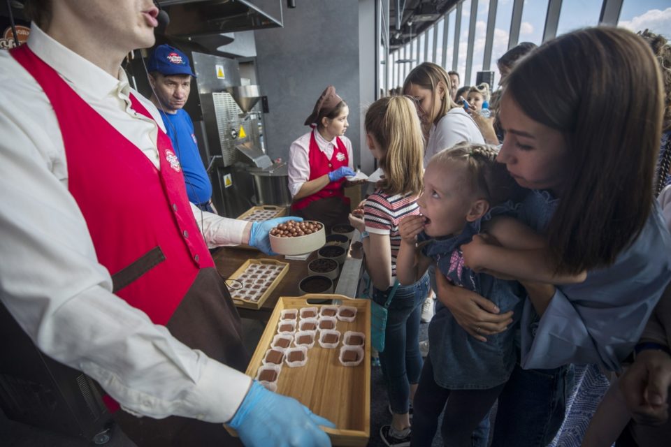 Στα εγκαίνια του υψηλότερου εργοστασίου σοκολάτας μικροί και μεγάλοι ανέβηκαν στην πλατφόρμα 360ο σε ύψος 327 μέτρων για να γευθούν φρέσκιες σοκολάτες. Στο εργοστάσιο οι επισκέπτες μπορούν να δουν από κοντά όλη τη διαδικασία παραγωγής μιας σοκολάτας.