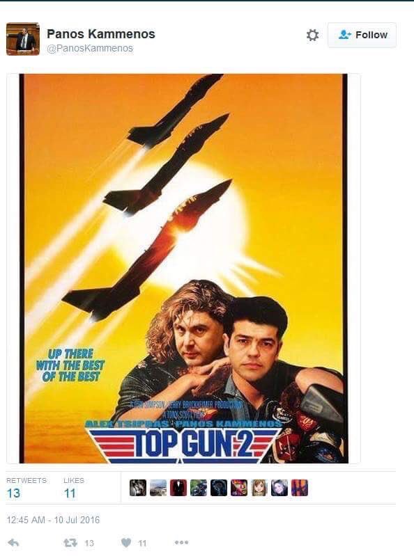Το bromance με τον Αλέξη ανάγλυφα αποτυπωμένο σε αυτό το καλαίσθητο photoshop που ήταν και το πρώτο χτύπημα του νεαρού υιού Καμμένου. Το ότι αυτό το πράμα ανέβηκε μετά από μια κρίσιμη σύνοδο κορυφής του ΝΑΤΟ το κάνει ακόμα καλύτερο.