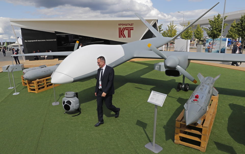 Το νέο ρωσικό επιθετικό drone «Sirius» στο περίπτερο της εταιρείας Group Kronshtadt Group.
