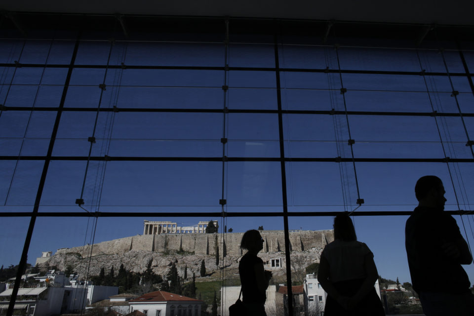 Επισκέπτες περιηγούνται στο ασύνηθες άδειο για την εποχή Μουσείο της Ακροπόλης, λόγω της πανδημίας του κορονοϊού, Αθήνα Παρασκευή 13 Μαρτίου ΑΠΕ-ΜΠΕ/ΚΩΣΤΑΣ ΤΣΙΡΩΝΗΣ
