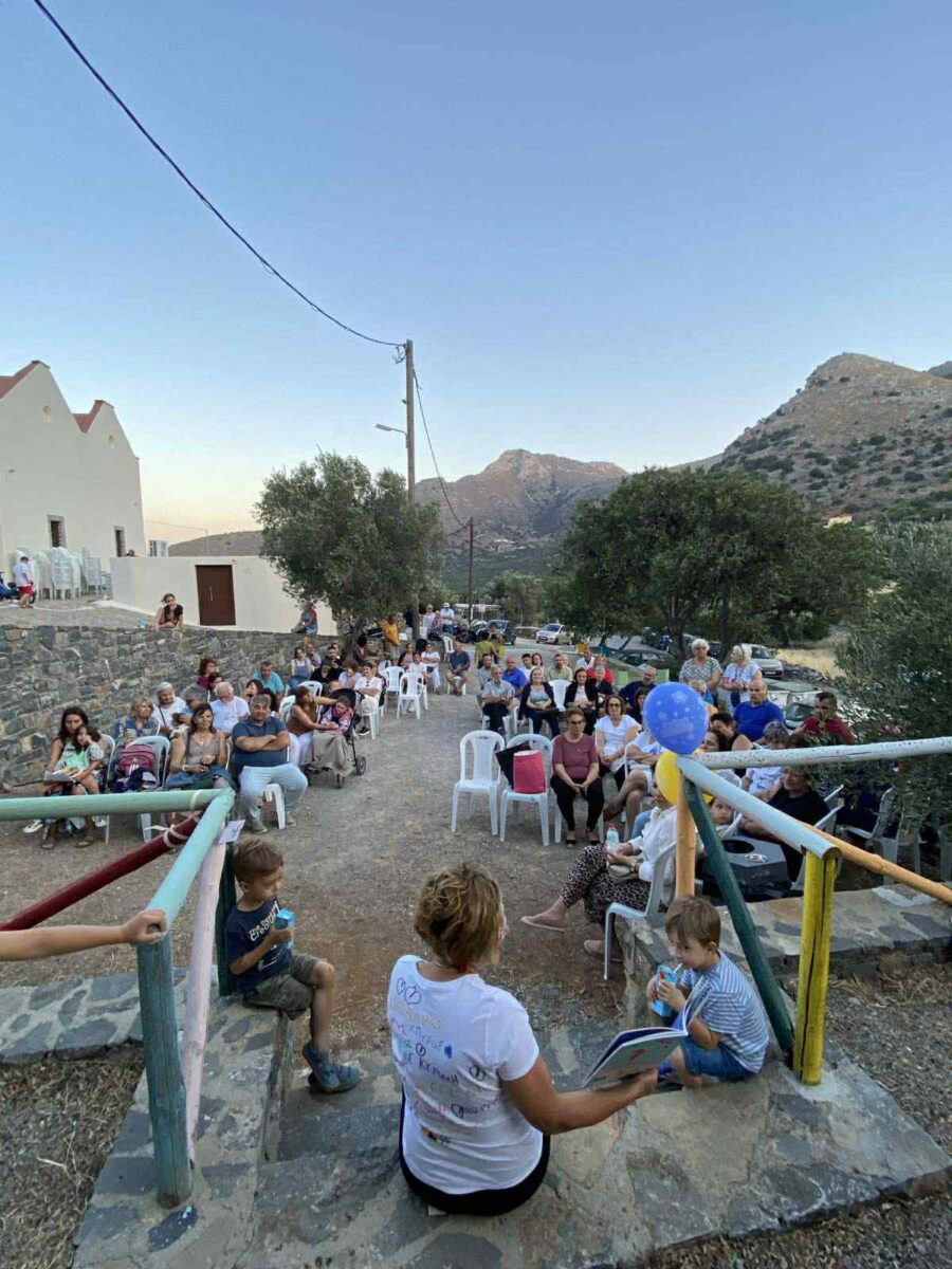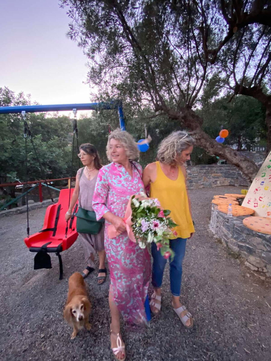 Το απόγευμα της Δευτέρας 30 Ιουνίου είχαν πια τοποθετηθεί. Η ομάδα έστησε σπουδαία γιορτή γι’ αυτό. Με δημιουργική απασχόληση – δακτυλομπογιές και πηλό. Με μπουφέ προσφορά ανθρώπων ταβέρνας της Επάνω Ελούντας, που εργάστηκαν για τη διοργάνωση την ημέρα του ρεπό τους, ενώ με μαγειρέματα συνεισέφεραν και άλλοι εθελοντές. Με ποτά, προσφορά τοπικού καφενείου-μπαρ. Και βέβαια, με μουσική και χορό.
