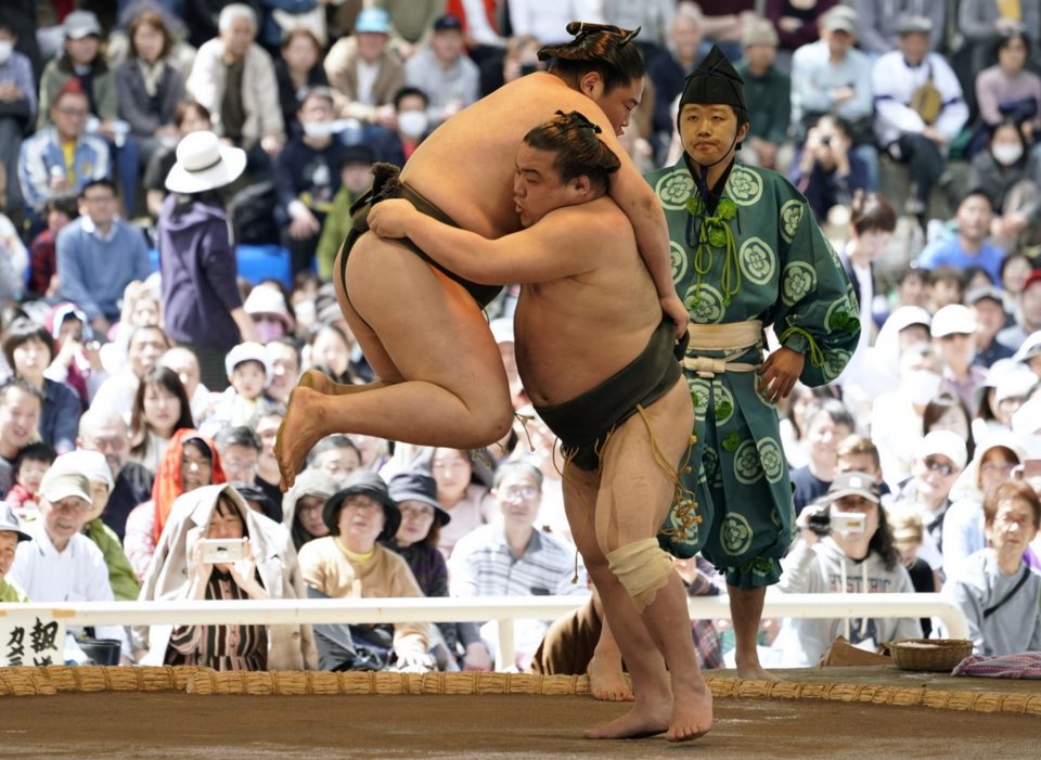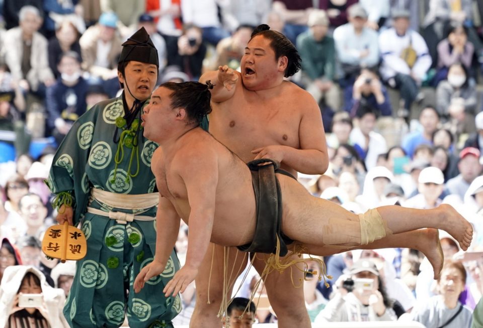 Κατά τη διάρκεια του φημισμένου τουρνουά σούμο Honozumo.
