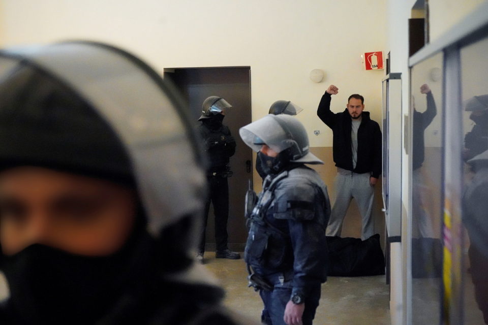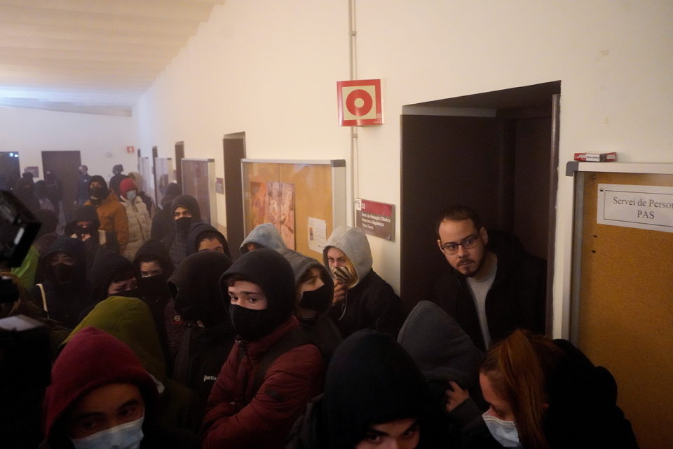 Ο Πάμπλο Χασέλ μέσα στο πανεπιστήμιο της Γέιδα στην Καταλονία την ημέρα της σύλληψης του, 16/2/2021. EPA/Paul de la Calle