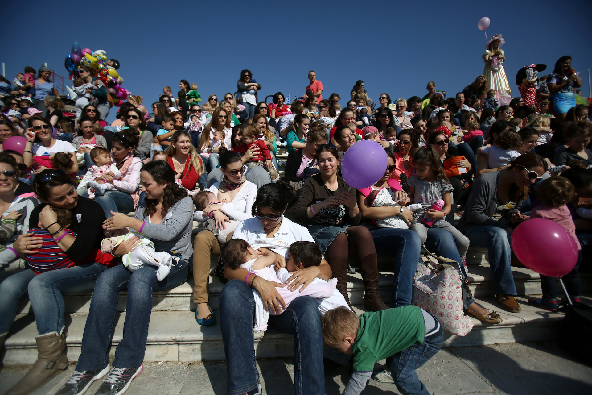 Μαμάδες σε 39 πόλεις της Ελλάδας συγκεντρώθηκαν σήμερα το πρωί σε δημόσιους χώρους και επιδόθηκαν σε δημόσιο θηλασμό με στόχο να αφυπνίσουν την κοινωνία για τα οφέλη του θηλασμού και τη στήριξη των νέων μαμάδων που θηλάζουν τα μωρά τους.