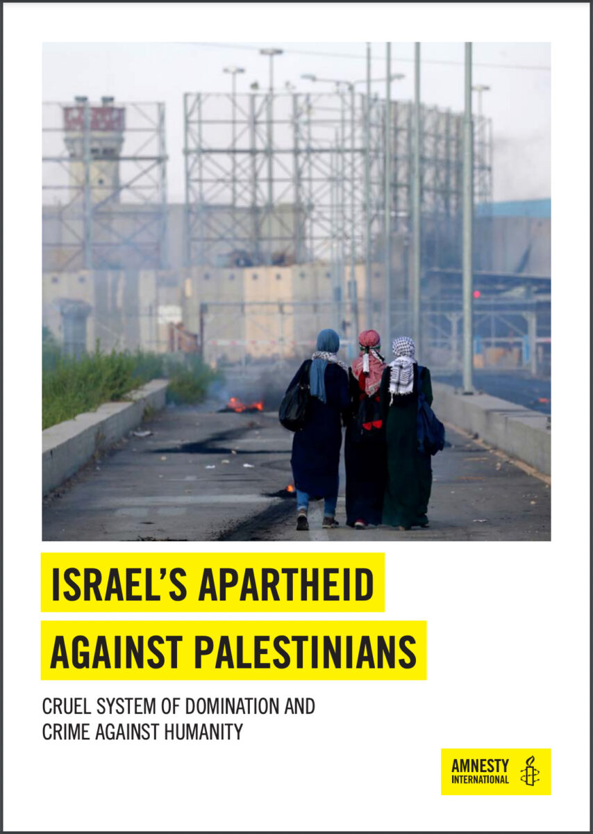 Τον Φεβρουάριο του 2022 η Διεθνής Αμνηστία δημοσίευε πολυσέλιδη έκθεση με τίτλο «Το Απαρτχάιντ του Ισραήλ εναντίον των Παλαιστινίων».