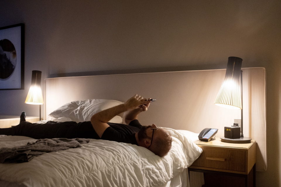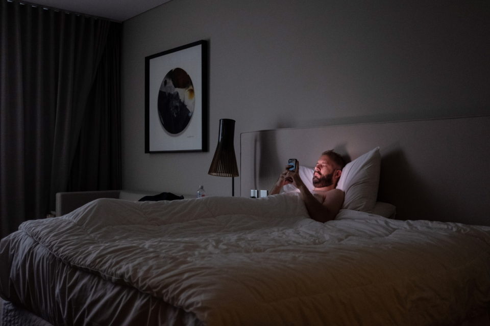 Διάβασμα στο κινητό, ξαπλωμένος στο κρεβάτι. 5 Νοεμβρίου 2020.