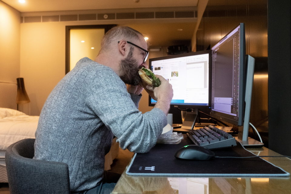Τρώγοντας το μεσημεριανό μπροστά στον υπολογιστή. 8 Νοεμβρίου 2020.