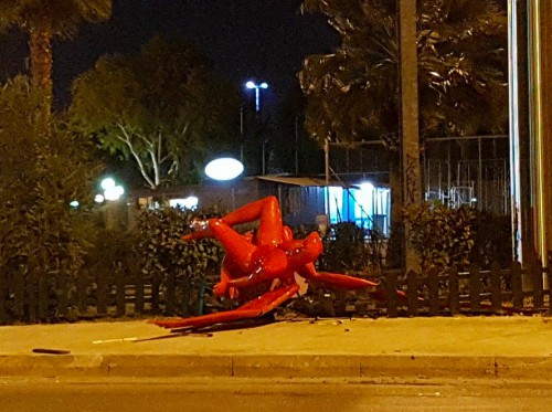 Όλα αυτά μέχρι τη νύχτα της 17 Ιανουρίου όπου το άγαλμα βρέθηκε πεσμένο από το βάθρο του. Στην αρχή πιστέψαμε ότι έφταιγαν οι σφοδροί άνεμοι που έπνεαν όλο το βράδυ όμως -plot twist- ο δήμαρχος Παλαιού Φαλήρου κατήγγειλε ότι ομάδα κουκουλοφόρων έριξε με σκοινιά το άγαλμα. Το γλυπτό έχει υποστεί φθορές από την πτώση αλλά σκοπός του καλλιτέχνη και του δημάρχου είναι να στηθεί ξανά στη θέση του. Είναι να απορεί κανείς με όλα αυτά που έχουν συμβεί γιατί ο Phylax δεν έχει χρησιμοποιήσει τα φτερά του για να πετάξει μακριά μπας και γλιτώσει.