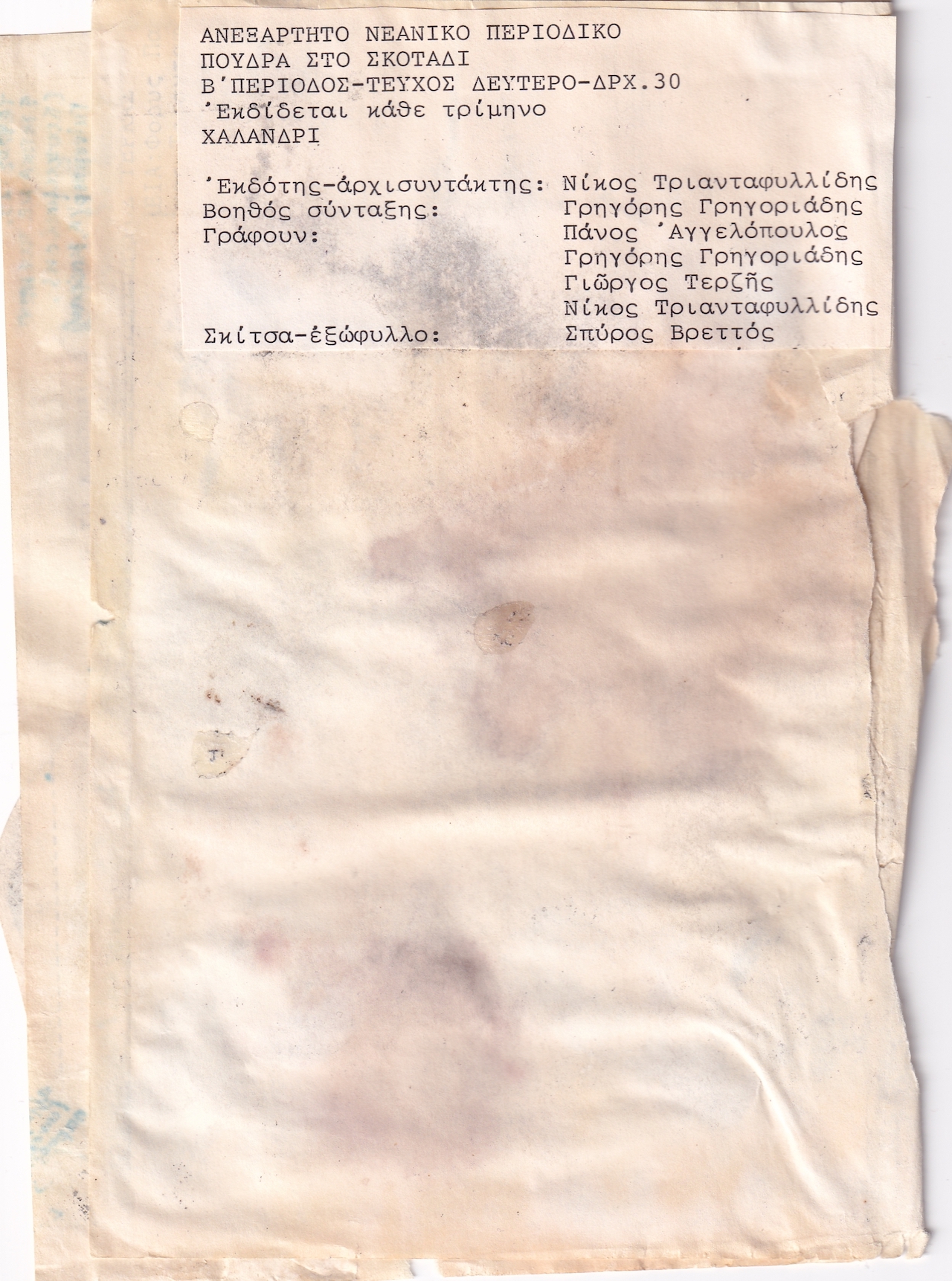 Εσείς τι κάνατε στην εφηβεία σας; Ο Νίκος Τριανταφυλλίδης εξέδιδε το «ανεξάρτητο νεανικό περιοδικό» (φανζίν, αν προτιμάτε) Πούδρα στο Σκοτάδι.
