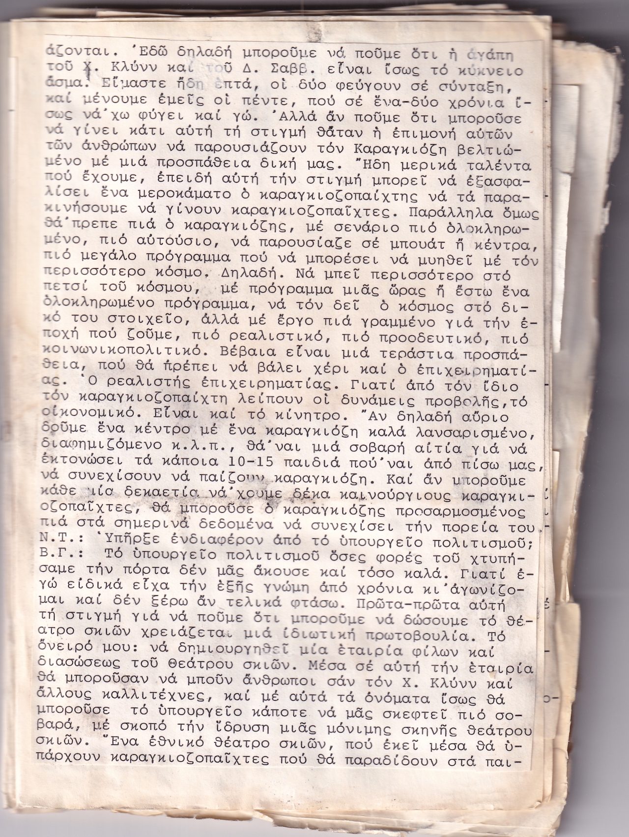 Από τα ονόματα της λεζάντας δώστε βάση στον «καραγκιοζοπαίκτη Βάγγο» και ιδού η σύνδεση του χθες με το σήμερα, μιας και στο δεύτερο τεύχος της Β’ περιόδου του φανζίν που θα διαβάσετε στη συνέχεια, φιλοξενείται μία πολύ μεγάλη συνέντευξή του στον Νίκο Τριανταφυλλίδη.