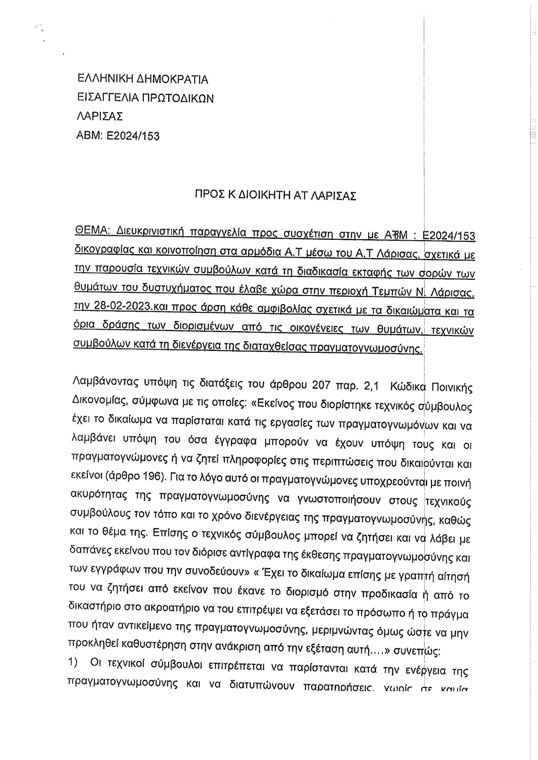 Την ίδια στιγμή, σύμφωνα με αποκλειστικές πληροφορίες που εξασφάλισε η Popaganda, έγγραφα της Εισαγγελίας που εστάλησαν στα αστυνομικά τμήματα, γνωστοποιούν πως οι τεχνικοί σύμβουλοι των οικογενειών θα επιτρέπεται να παρίστανται κατά την ενέργεια της πραγματογνωμοσύνης και να διατυπώνουν παρατηρήσεις, χωρίς ωστόσο «σε καμία περίπτωση να παρεμβαίνουν στο έργο του πραγματογνώμονα ούτε να διενεργούν πράξεις που εμπίπτουν στην αποκλειστική του αρμοδιότητα». Επίσης, οποιαδήποτε αυτοτελής δειγματοληψία από τεχνικούς συμβούλους καθώς και αποστολή δειγμάτων σε εργαστήρια εντός ή εκτός Ελλάδας, θα συνιστά «ανεπίτρεπτη παρέμβαση» στο έργο του πραγματογνώμονα και θα αντίκειται στο άρθρο 207 ΚΠΔ.