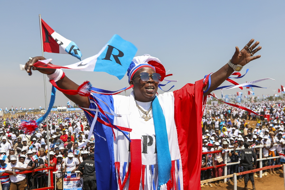 Ένας υποστηρικτής του Πατριωτικού Μετώπου της Ρουάντα (ΠΜΡ) χορεύει καθώς περιμένει με χιλιάδες άλλους τον νυν Πρόεδρο της Ρουάντα Πολ Καγκάμε για την τελευταία του προεδρική εμφάνιση, πριν τις επικείμενες εκλογές, στο Κιγκάλι της Ρουάντα, 13 Ιουλίου 2024. EPA/DANIEL IRUNGU
