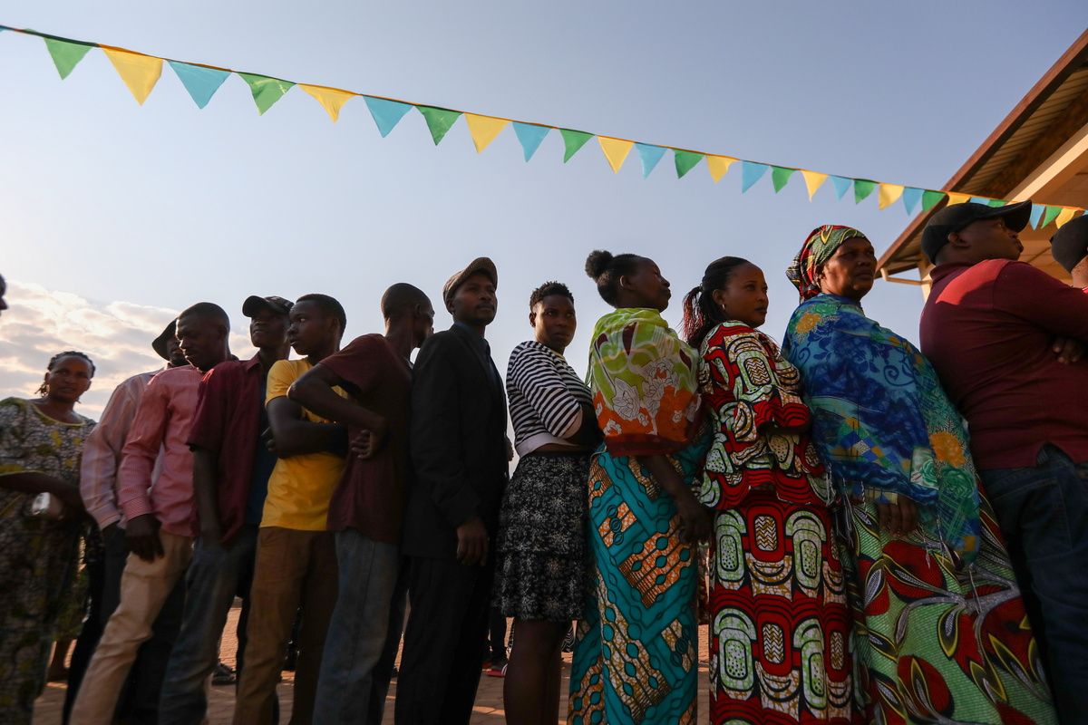Πολίτες της Ρουάντας περιμένουν στην σειρά για να ψηφίσουν σε ένα εκλογικό κέντρο στο Κιγκάλι της Ρουάντα, 15 Ιουλίου 2024. EPA/DANIEL IRUNGU
