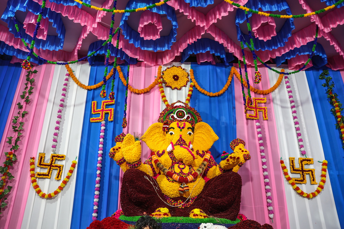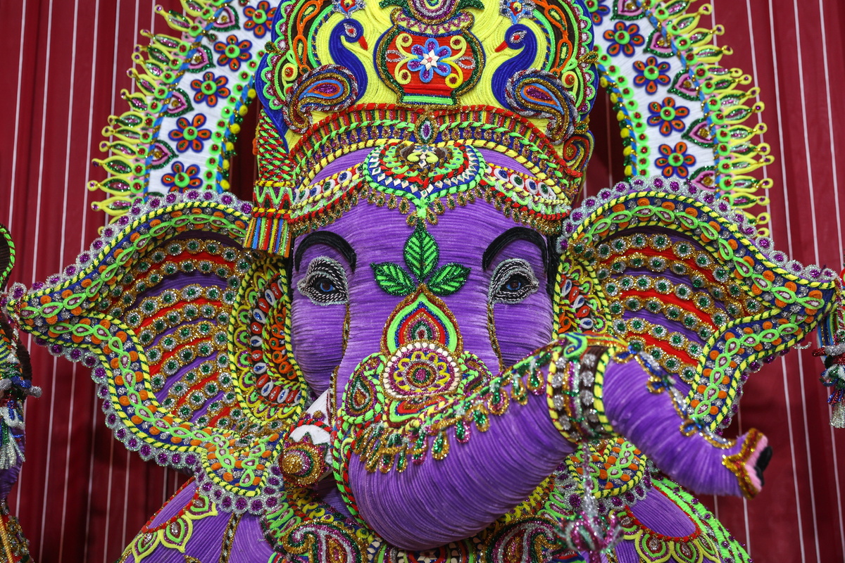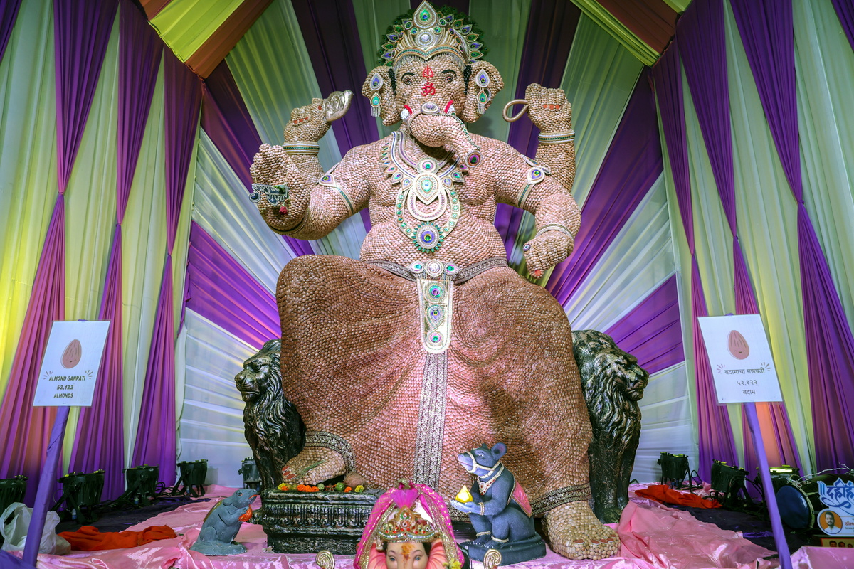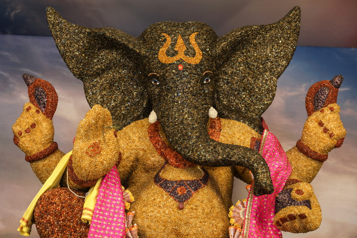 Στη Βομβάη, περίτεχνα διακοσμημένα είδωλα της ελεφαντοκέφαλης ινδουιστικής θεότητας με ύψος μέχρι και τρία μέτρα, βαπτισμένα στα πιο ψυχεδελικά χρώματα και φτιαγμένα από τα πιο απρόσμενα υλικά -γομολάστιχες και μολύβια, πιόνια από σκάκι, χνουδωτά πομ-πομ, ξηρούς καρπούς- λατρεύονται σε εκατοντάδες pandals ή αυτοσχέδιες σκηνές, που οι πιστοί επισκέπτονται καθημερινά για να προσευχηθούν και να προσφέρουν στην αγαπημένη τους θεότητα γλυκά, φρούτα και όλως των ειδών τις λιχουδιές, παρακαλώντας για την εύνοιά του.