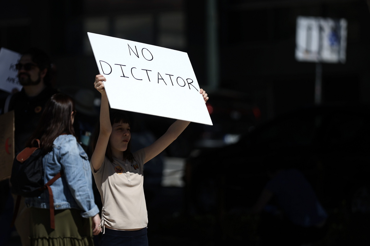 «Ο Τραμπ θέλει να μας κυβερνά ως τύραννος. Αλλά εδώ είναι Αμερική και η εξουσία ανήκει στον λαό – όχι σε επίδοξους βασιλιάδες ή στους δισεκατομμυριούχους κολλητούς τους», δήλωσαν οι διοργανωτές.