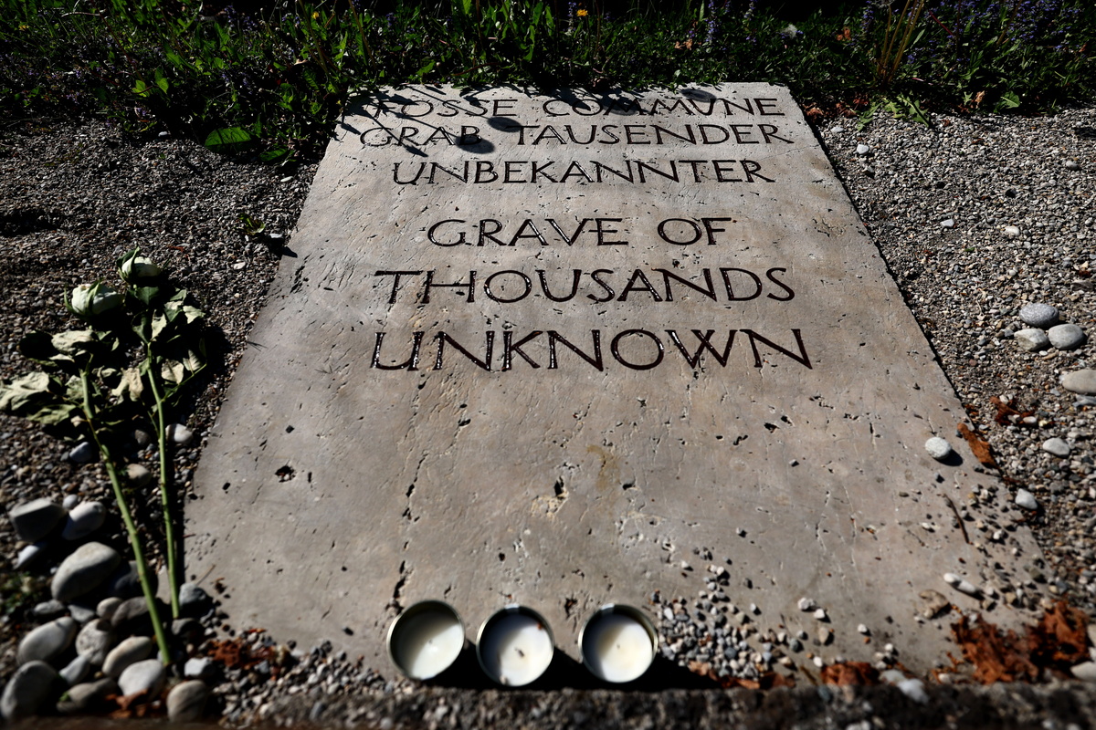 Πέτρινο μνημείο για τους χιλίαδες άγνωστους νεκρούς, στο πρώην στρατόπεδο συγκέντρωσης Νταχάου, πριν από την εκδήλωση μνήμης για την 80ή επέτειο της απελευθέρωσης του στρατοπέδου στο Νταχάου της Γερμανίας, 29 Απριλίου 2025. EPA/ANNA SZILAGYI