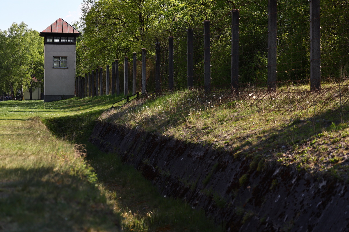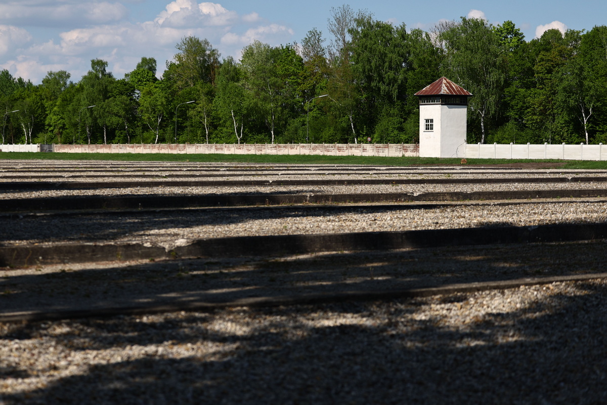 Ενας από τους πύργους φρουράς στην περίμετρο του πρώην στρατοπέδου συγκέντρωσης Νταχάου, κατά από εκδήλωση μνήμης για την 80ή επέτειο της απελευθέρωσης του στρατοπέδου στο Νταχάου της Γερμανίας, 29 Απριλίου 2025. EPA/ANNA SZILAGYI