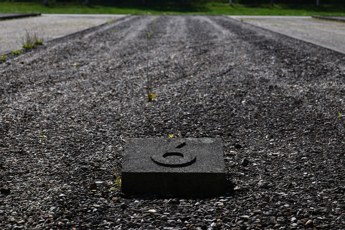 Η αναμνηστική πέτρα του θάλαμου 6 στο πρώην στρατόπεδο συγκέντρωσης Νταχάου κατά την εκδήλωση μνήμης για την 80ή επέτειο της απελευθέρωσης του στρατοπέδου στο Νταχάου της Γερμανίας, 29 Απριλίου 2025. EPA/ANNA SZILAGYI