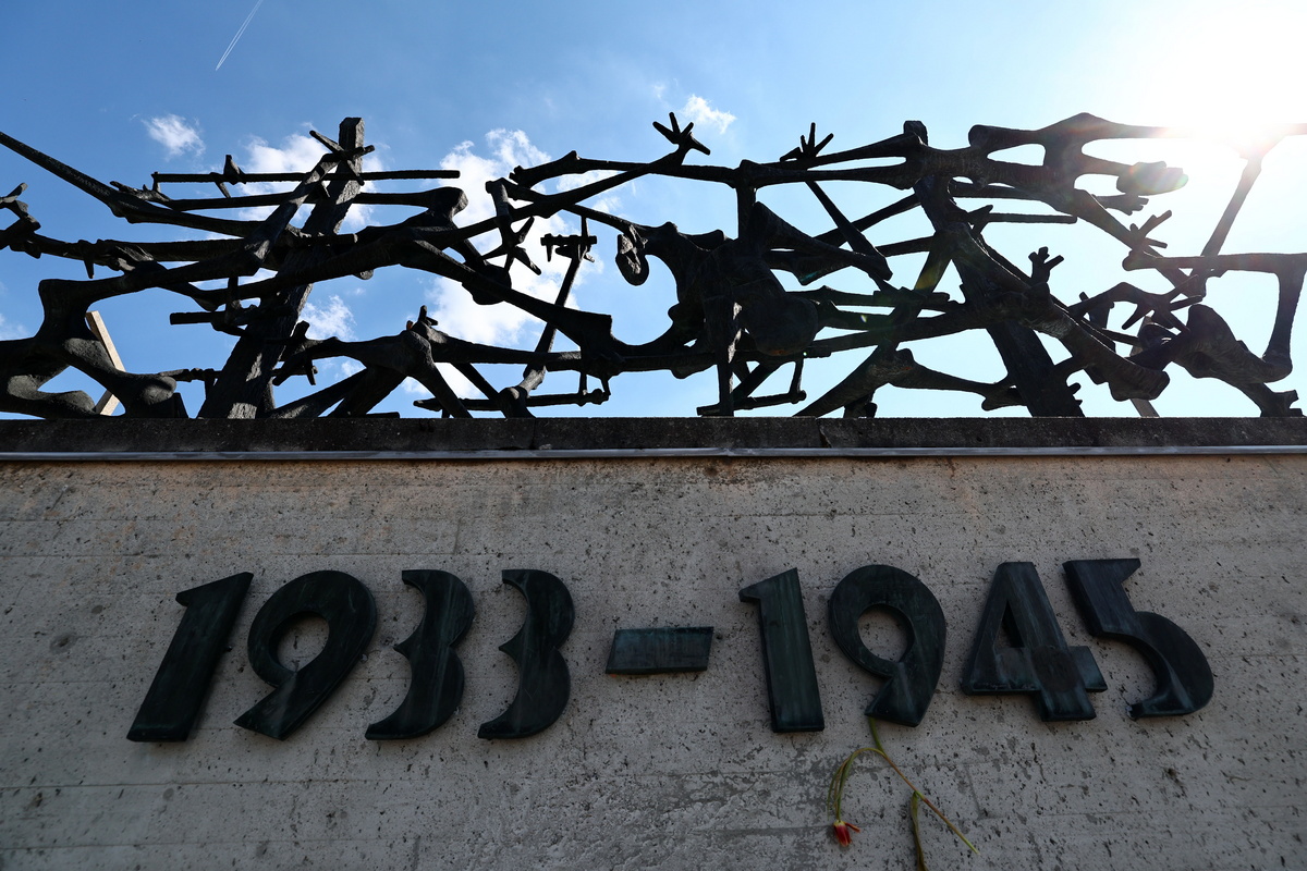 Γλυπτό μνημείο στο χώρο μνήμης του στρατοπέδου συγκέντρωσης Νταχάου, κατά την εκδήλωση μνήμης στο πρώην στρατόπεδο για την 80ή επέτειο της απελευθέρωσής του, Νταχάου της Γερμανίας, 29 Απριλίου 2025. EPA/ANNA SZILAGYI