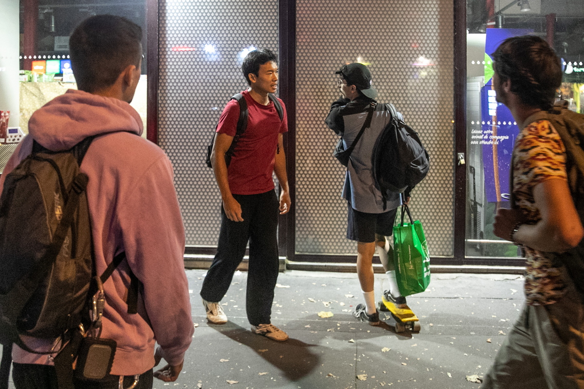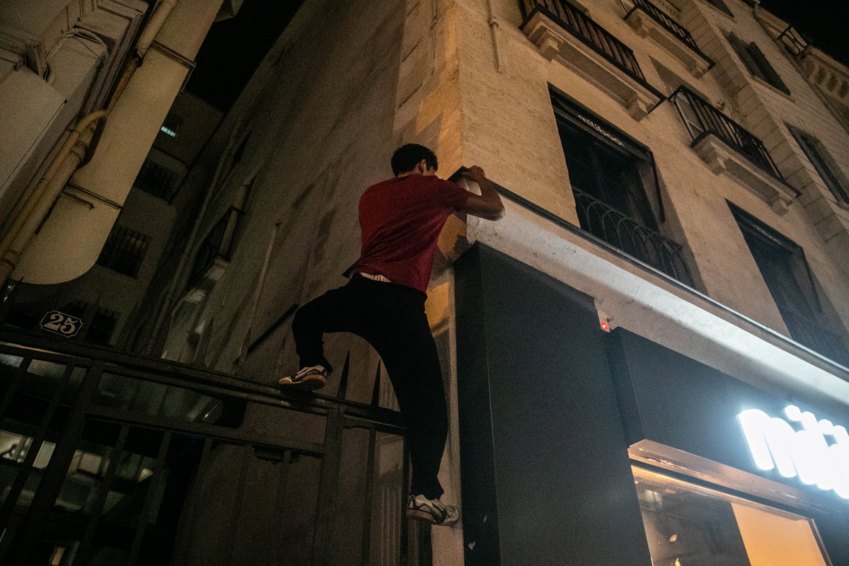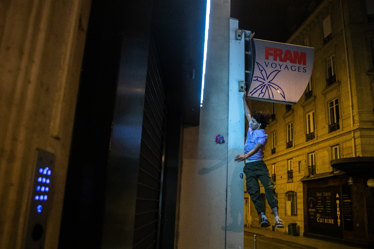 Ο Kevin Ha και άλλοι ακτιβιστές από την ομάδα παρκούρ «On The Spot» ετοιμάζονται να σβήσουν τα φώτα ορισμένων καταστημάτων στο Παρίσι, Γαλλία, 06 Αυγούστου 2022.