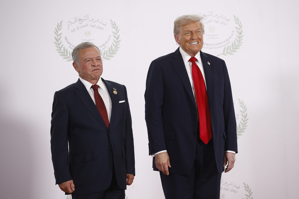 Ο Τούρκος Πρόεδρος Ρετζέπ Ταγίπ Ερντογάν, ο Αιγύπτιος Πρόεδρος Αμπντέλ Φατάχ αλ-Σίσι, ο Αμερικανός Πρόεδρος Ντόναλντ Τραμπ, ο Εμίρης του Κατάρ Σεΐχης Ταμίμ μπεν Χαμάντ αλ-Θάνι, ο Βασιλιάς Αμπντουλάχ Β΄ της Ιορδανίας και άλλοι αξιωματούχοι ποζάρουν κατά τη διάρκεια της οικογενειακής φωτογραφίας στη Σύνοδο Κορυφής για την Ειρήνη στη Γάζα στο Σαρμ Ελ Σέιχ της Αιγύπτου, στις 13 Οκτωβρίου 2025. EPA/YOAN VALAT / POOL
