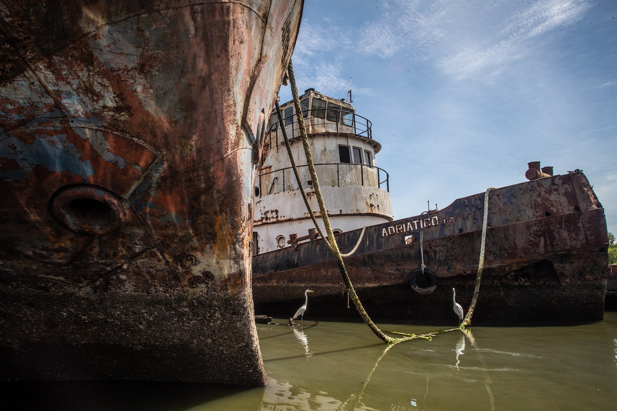 Καράβια παρατημένα και σκουριασμένα, μοιάζουν στις φωτογραφίες με ξεδοντιασμένα γέρικα στόματα. Μισοβουλιαγμένα κουφάρια, από σίδερο, αλλά όχι μόνο, διαλύονται ησύχως στα ρηχά, βρώμικα νερά του κόλπου. Η εγκατάλειψή τους απειλεί σοβαρά το γύρω περιβάλλον και δημιουργεί κινδύνους για τη ναυσιπλοΐα και τις υποδομές που περιστοιχίζουν την περιοχή.