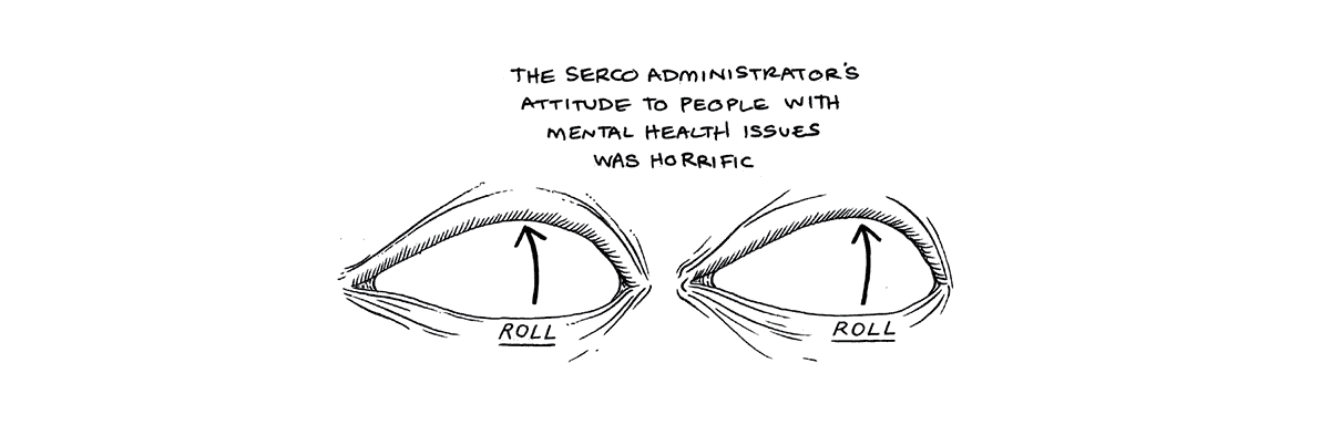 Θυμάμαι μια ημέρα που μας έδειχναν πως να χρησιμοποιούμε σωματική βια. Ήταν σαν παιχνίδι ρόλων. Δήλωσα εθελοντής: “ΟΚ, εσύ θα είσαι ο πελάτης που δεν συμπεριφέρεται σωστά και οι υπόλοιποι θα είστε οι αξιωματικοί της Σέρκο. Περιορίστε τον”.
