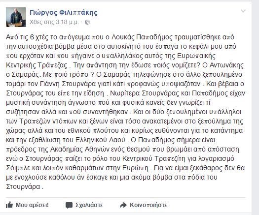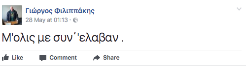 Η επίμαχη ανάρτηση του Γιώργου Φιλιππάκη (που έχει πια διαγραφεί)