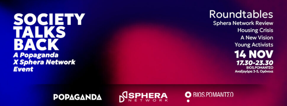 Η Popaganda, μέλος του Ευρωπαϊκού δικτύου Ανεξάρτητων Μέσων Sphera Network επιστρέφει για μία ακόμα χρονιά στο Ρομάντσο με ένα απόγευμα γεμάτο συζητήσεις με φορείς της κοινωνίας και προσωπικότητες από διαφορετικές γενιές και κοινωνικές ομάδες. Roundtables, speed meetings on stage και προβολές των short documentaries που παράγουν τα media του Sphera Network, την Παρασκευή στις 14 Νοεμβρίου στο Ρομάντσο από τις 17:30 μέχρι τις 23:30.