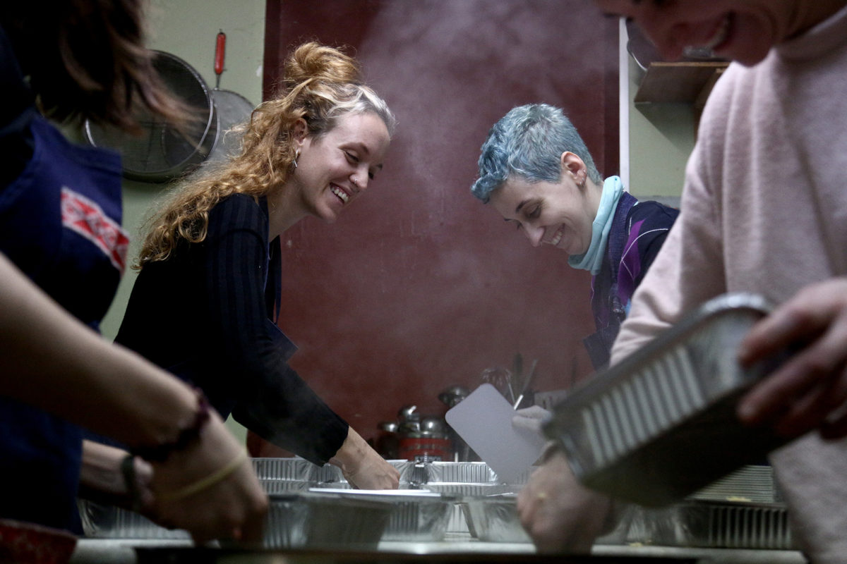 Με τις φίλες και τους φίλους μου μίλησα λοιπόν αυτή τη φορά, ένα πρωινό που η κακοκαιρία «Κάρμελ» πάγωνε τα πάντα και που στις κατσαρόλες άχνιζε σπανακόρυζο. Ο Νίκος, μάγειρας και ιδρυτικό μέλος της κουζίνας, με την Εύη, που ξεκίνησε στην κουζίνα στην καρδιά της πανδημίας, και τη Χρυσοφίλη, που όταν δεν κάνει μάθημα στα Πίσω Θρανία και στον Μοχάμεντ, μαγειρεύουν μαζί τον τελευταίο καιρό.