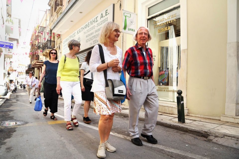 Πέρα από τους δέκα Ελβετούς μαθητές, υπάρχει ένας πυρήνας ανθρώπων ντόπιων αλλά και Ελλήνων της Ελβετίας, που αγαπούν την ελληνική κουλτούρα και θέλουν να έρθουν σε επαφή όχι μόνο με την ιστορία της αλλά και την σύγχρονη πραγματικότητά της. Ακριβώς σε αυτό το πλαίσιο, οκτώ Ελβετοί μαθητές, όλοι ενήλικες, επισκέφθηκαν την Αθήνα για μια σειρά μαθημάτων αλλά και ξεναγήσεων όχι μόνο σε αρχαιολογικούς χώρους αλλά και στο εμπορικό τρίγωνο. Εκεί τους συναντήσαμε σε μια βόλτα τους στις στοές αλλά και στα εμπορικά μαγαζιά και café της πόλης, μια μέρα με πολύ ζέστη και πολύ κίνηση, μια δηλαδή τυπική ανοιξιάτικη μέρα στο κέντρο της πρωτεύουσας.