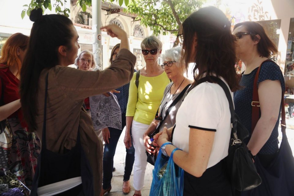 Η βόλτα συνεχίζεται στην Αθηνάς, στα μπαχαράδικα της Ευρυπίδου, στα υφασματάδικα γύρω από την Κολοκοτρώνη, στην πολύβουη Αγ. Ειρήνης, στο βιβλιοπωλείο των εκδόσεων «Το Ροδακιό» και με ένα πέρασμα από τα γραφεία της Popaganda. Αν ξεχαστείς για λίγο, ότι είσαι κι εσύ ένας μόνιμος κάτοικος Αθήνας, και παρατηρήσεις πώς παρατηρούν την πόλη οι άνθρωποι που την επισκέπτονται ίσως ανακαλύψεις κι εσύ κάτι που μέχρι τώρα δεν το είχες καν δει ενώ μπορεί να περνάς από αυτόν τον δρόμο σχεδόν κάθε μέρα. Μια βόλτα στην Αθήνα με μια παρέα Ελβετών που αποφάσισαν να μάθουν ελληνικά και να μπουν λίγο πιο βαθιά στις ρίζες της ελληνικής καθημερινότητας έχει κάτι εκπαιδευτικό και για σένα, που ζεις σε αυτή την πόλη.