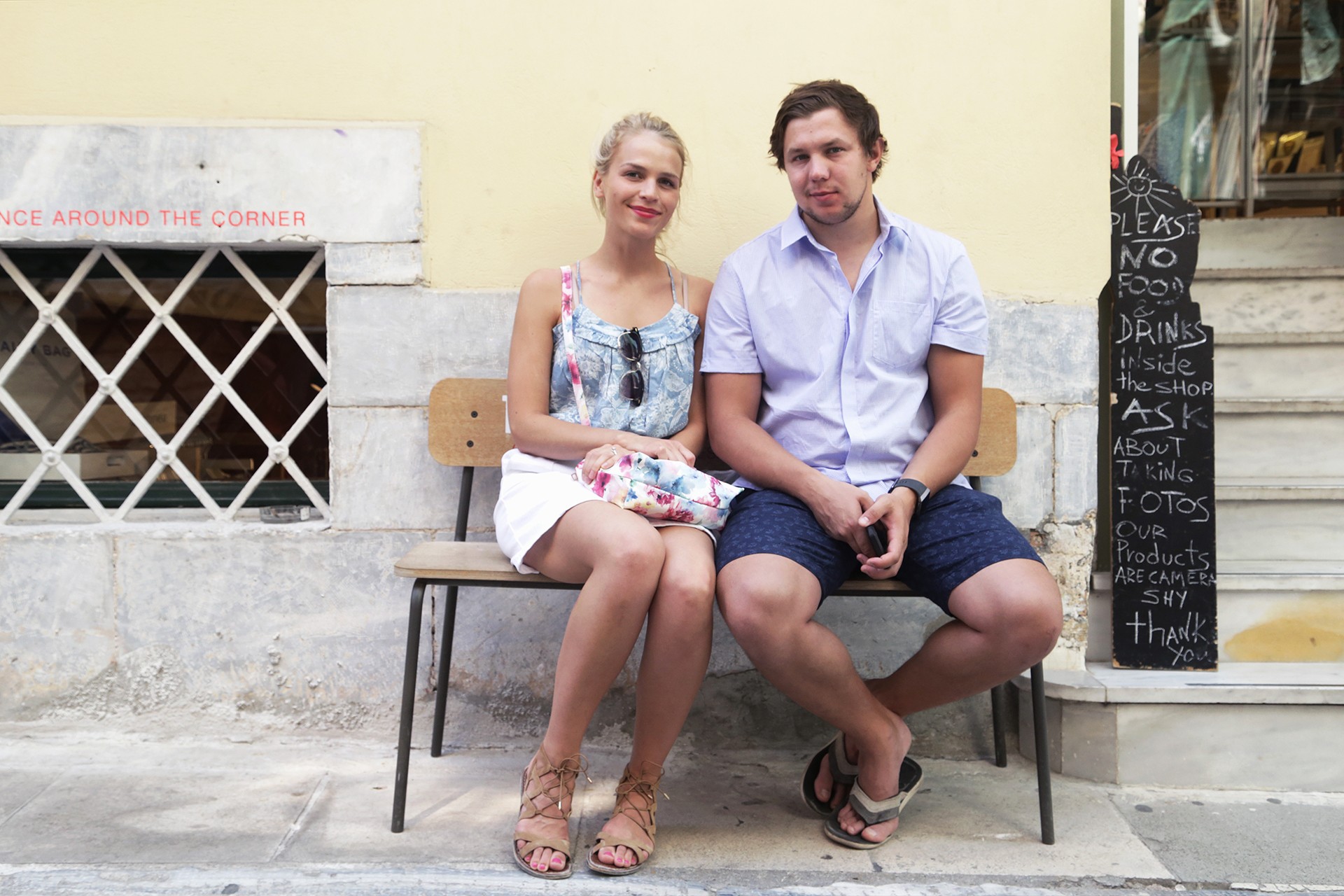 Νίλε και Χέρνι, Γερμανία: «Είναι μόλις η δεύτερη μας μέρα στην Αθήνα, πήραμε για μερικούς φίλους λάδι και σαπούνια από λάδι. Δεν είμαστε από εκείνους που κολλάνε ένα μαγνητάκι στο ψυγείο από κάθε χώρα που έχουμε επισκεφτεί, κάνουμε ένα διάλειμμα με κάθε ταξίδι και αυτό είναι το σουβενίρ μας. Μένουμε στα Εξάρχεια, μας αρέσουν γιατί είναι πολύ κουλ».