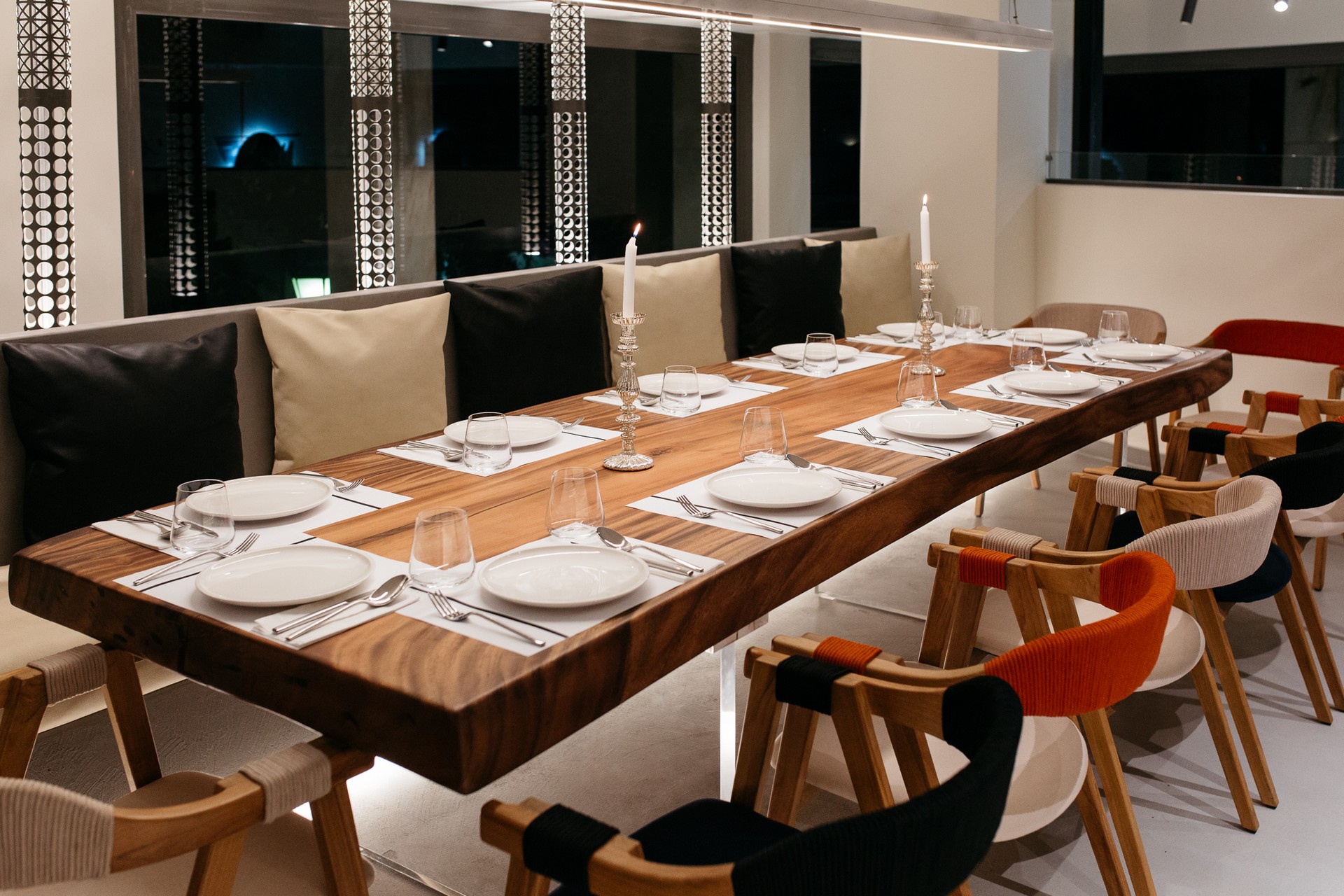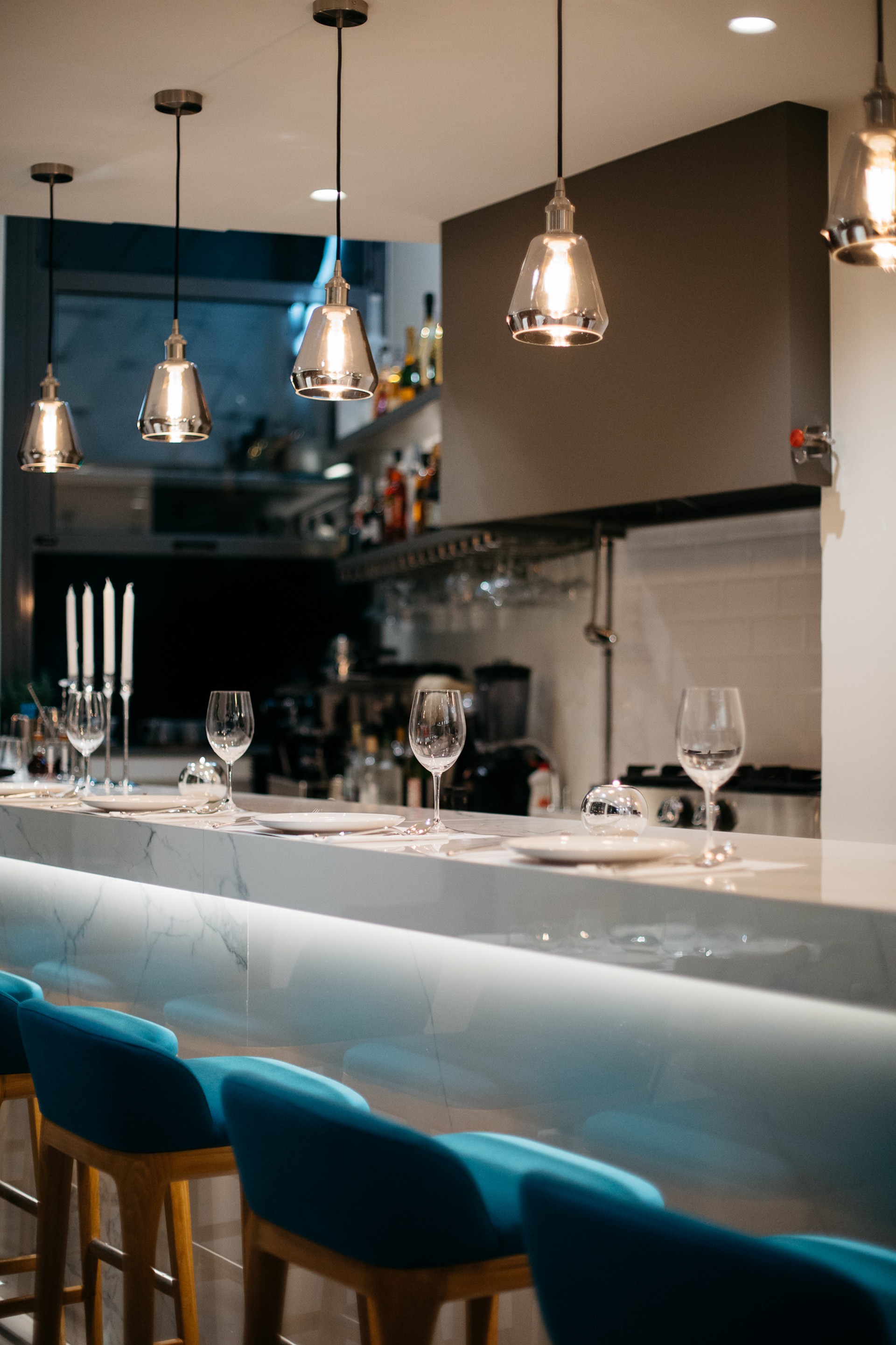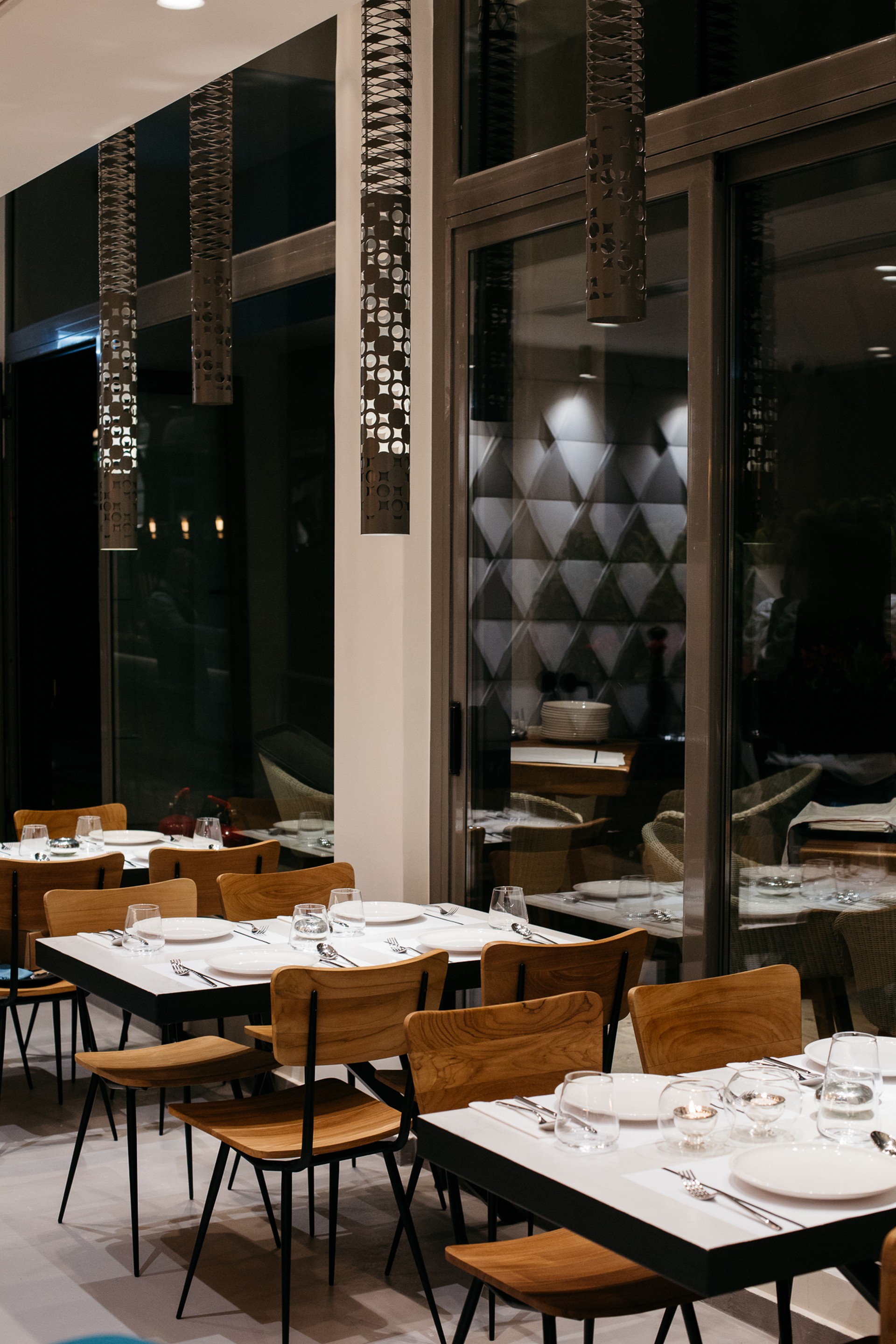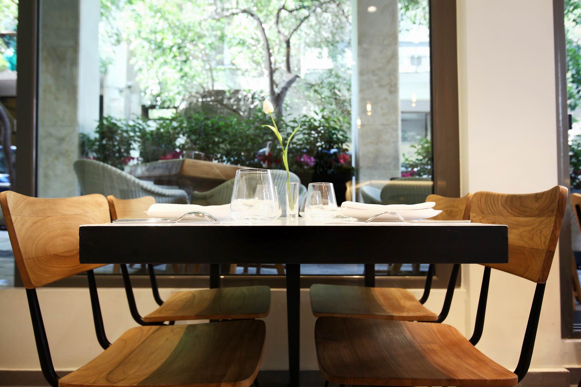 Τα λίγα τετραγωνικά του εστιατορίου φιλοξενούσαν κάποτε ένα ταξιδιωτικό γραφείο και διαμορφώθηκαν για τη νέα τους χρήση από τον αρχιτέκτονα Δημήτρη Σακελλαρίου. Ο χώρος του νέου gourmet εστιατορίου έχει λεπτομέρειες από μέταλλο που κρύβουν τον φωτισμό, έντονο το στοιχείο του φυσικού ξύλου και του μαρμάρου, κι ανάγλυφα τρίγωνα που ενισχύουν τον μοντέρνο χαρακτήρά του.