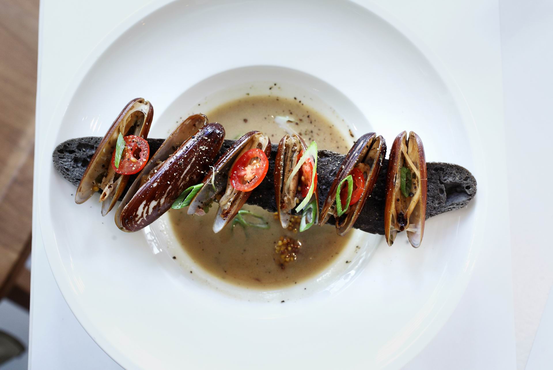 Όστρακα με sauce σαμπάνιας, αρωματικό βούτυρο και χαβιάρι μουστάρδας