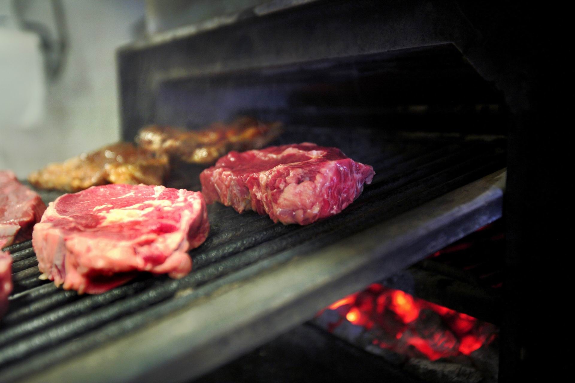 Το κρέας ψήνεται στον υψηλής τεχνολογίας ισπανικό ξυλόφουρνο Mibrasa.